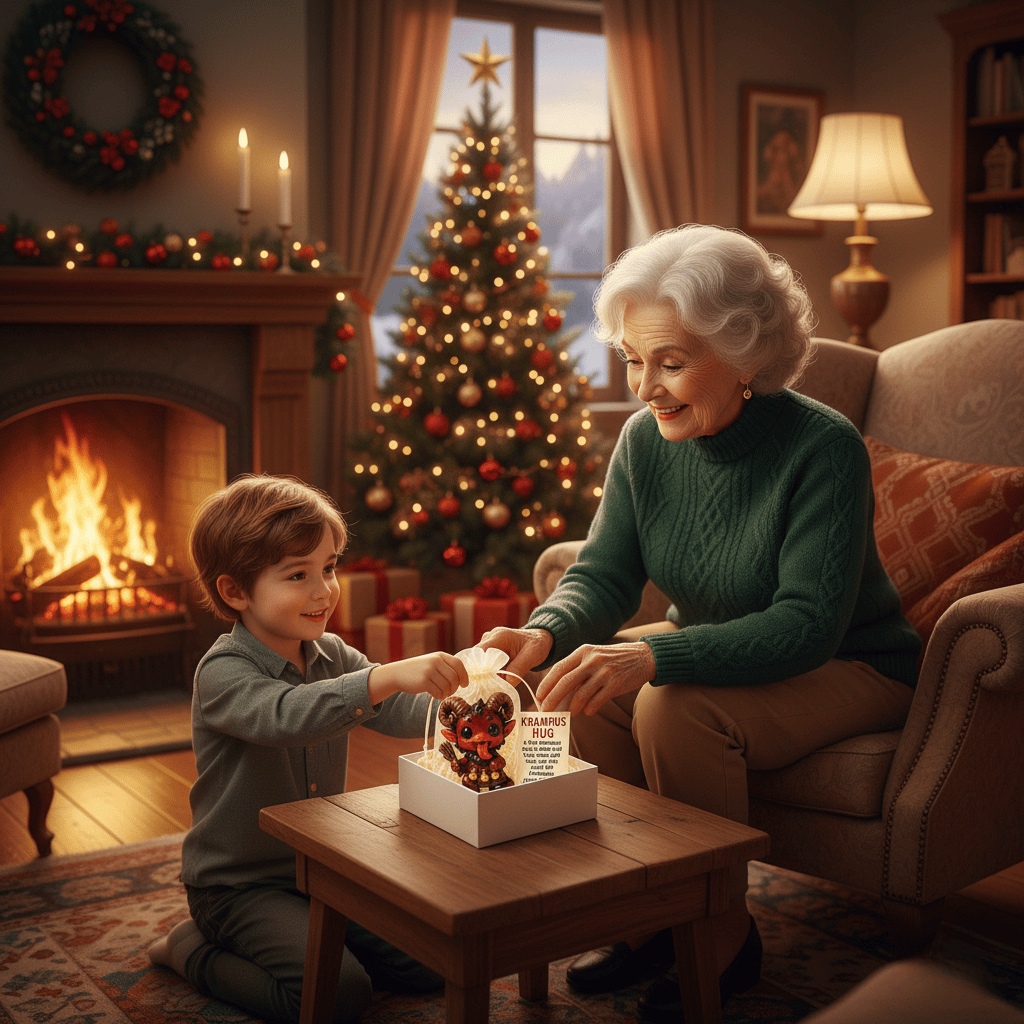 Every Krampus Hug comes packaged in a soft organza gift bag, paired with a holiday blessing card — making each unboxing feel like opening a tiny piece of Christmas magic.